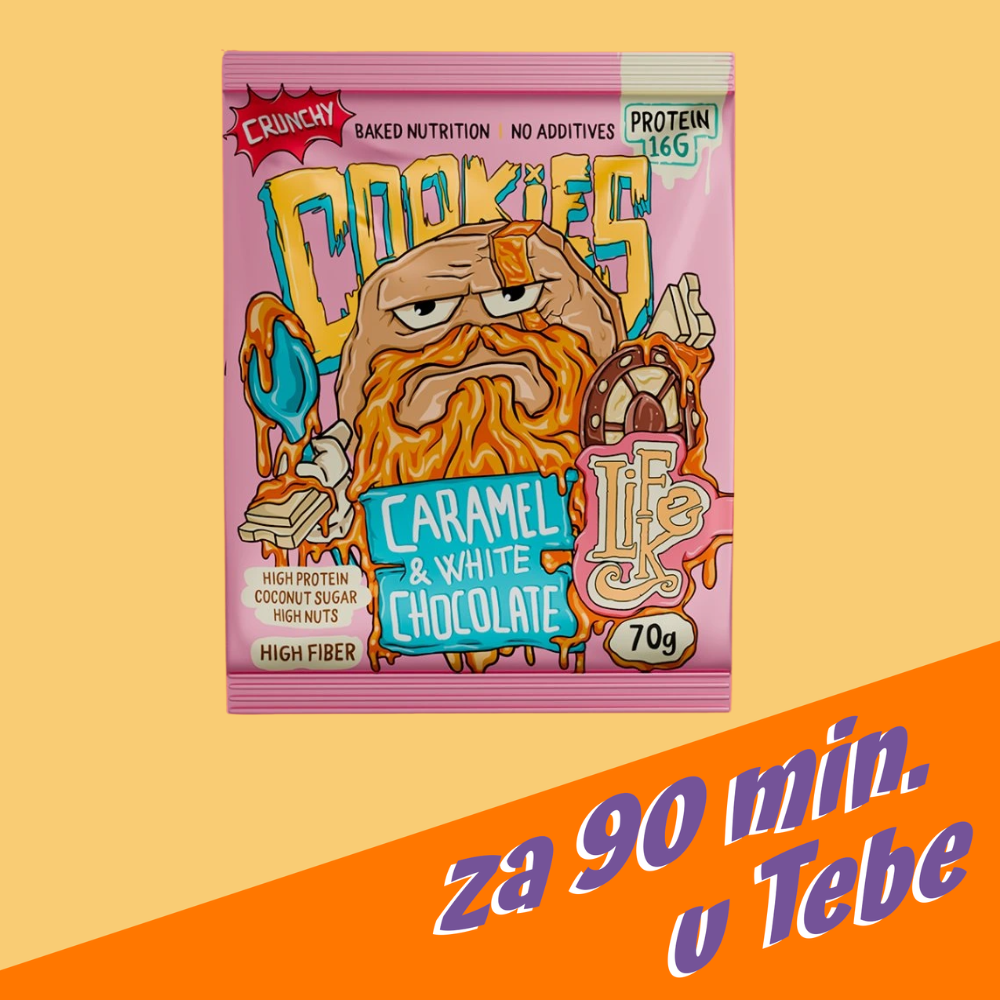 Tato proteinová cookie s karamelem a bílou čokoládou spojuje chuť dezertu, který bys čekal v kavárně, s výživovými hodnotami, které ti udělají radost. Každé sousto kombinuje jemnost bílé čokolády, sladké tóny karamelu a křupnutí oříšků.