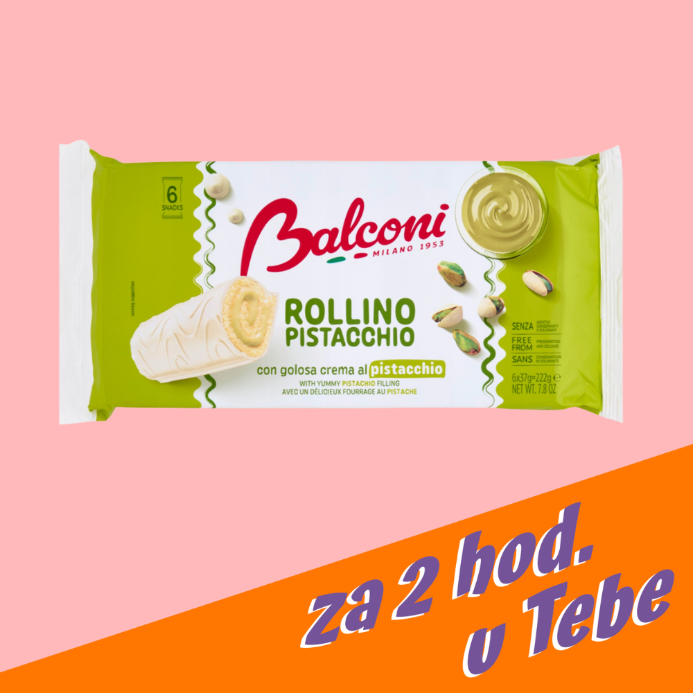Balconi Rollino al Pistacchio je nadýchaná piškotová roláda plněná jemným pistáciovým krémem, která potěší každého milovníka sladkých dezertů. Její lehká textura a harmonická chuť z ní dělají ideální volbu ke kávě, na odpolední svačinu nebo jako malé domácí potěšení.