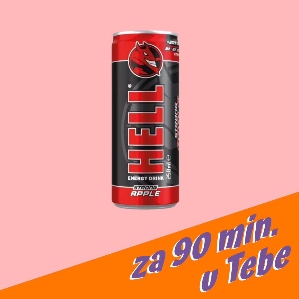 HELL Strong Apple 250 ml je energetický nápoj s výraznou jablečnou chutí a zvýšeným obsahem kofeinu pro silnější podporu bdělosti a soustředění. Praktická plechovka se hodí na cesty, sport i práci a doplňuje energii bez konzervantů.
